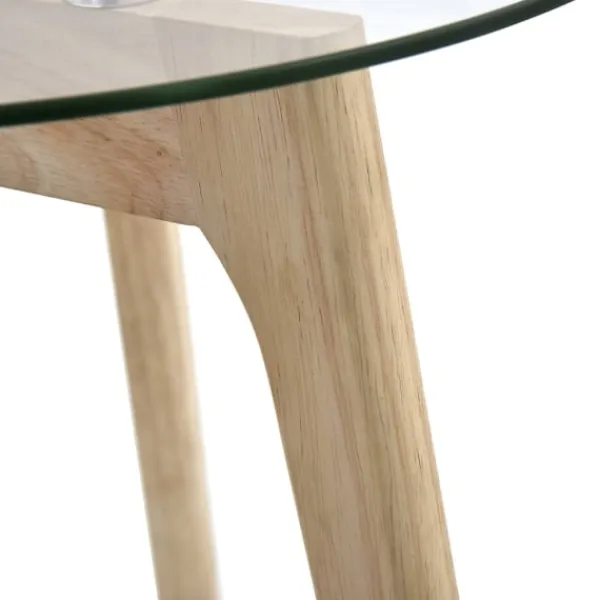 Denna uppsättning små sidobord har en elegant design som kommer att förhöjda den existerande inredningen i ditt rum. Bordsskivorna är tillverkade i förstärkt härdat glas som är starkt, slätt och enkelt att torka av. Du kan ställa dina drickor, vaser, frukter med mera pdå dem. Borden stöds av ben i massiv ek som är mycket stabilt och hållbart. Dessa sidobord har en kompakt, platsbesparande och lätt design och kan enkelt flyttas runt. De kan användas som ett matbord, soffbord eller arbetsbord hemma och på kontoret. Dessa bord är väldigt enkla att montera.