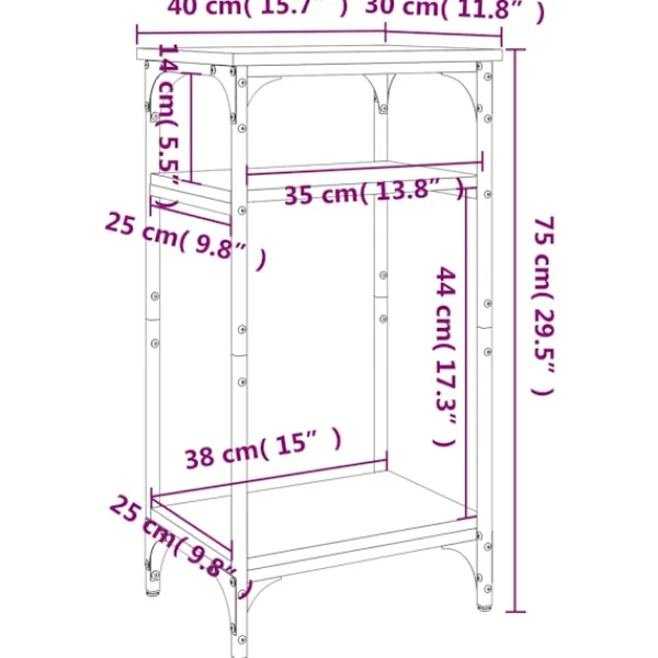 Denna sidobord utstrålar en industriell charm och blir ett elegant tillägg i din vardagsrumsinredning! Robust material: Det konstruerade träet är av exceptionell kvalitet med slät yta och är också starkt, stabilt och fuktbeständigt.Förvaringsfunktion: Detta soffbord med ett öppet förvaringsutrymme har gott om plats för att hålla dina tidningar, böcker, fjärrkontroller och andra små föremål välorganiserade och inom räckhåll.Praktisk bordsskiva: Den praktiska bordsskivan är perfekt för att placera dryck, mat och inredning.Stabil ram: Bordets stålram säkerställer robusthet och stabilitet.Justerbara ben: Tack vare de justerbara benen kan lampbordet stå på ojämna golv utan svårighet. Varning:För att förhindra att den välter måste denna produkt användas med den medföljande monteringsanordningen för vägg Observera:Varje produkt levereras med en monteringsmanual i lådan för enkel montering.