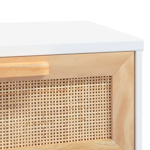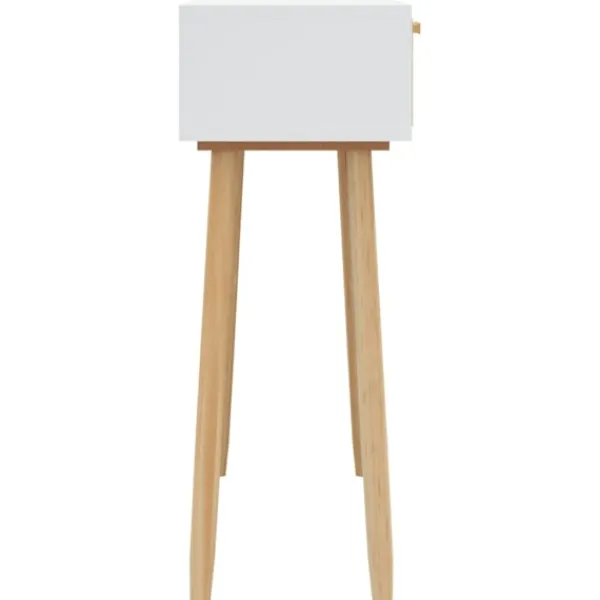 Få en skandinavisk känsla i ditt rum med detta konsolbord! Det är ett praktiskt och dekorativt tillskott i din heminredning. Hållbart material: Det konstruerade träet är av exceptionell kvalitet med slät yta och är också starkt, stabilt och fuktbeständigt.Gott om förvaringsutrymme: Bordet är utrustat med 2 lådor som erbjuder gott om förvaringsutrymme för att hålla dina olika dagliga saker välorganiserade och inom räckhåll. Dessutom är den fin tack vare dess dörrar i naturlig rotting.Fötter i massiv furu: Träfötterna ger produkten stabilitet och ett naturligt, behagligt utseende. Den smälter in med vilken inredning som helst.Robust ovansida: Dess robusta ovansida är perfekt för att placera krukväxter, inramade foton och andra dekorativa föremål. Observera:Varje produkt levereras med en monteringsmanual i lådan för enkel montering. Varning:För att förhindra att den välter måste denna produkt användas med den medföljande monteringsanordningen för vägg