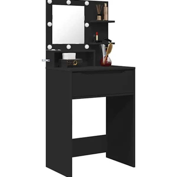 - Flexibla förvaringslösningar Utrustad med brädhyllor och glidande lådor, ger det gott om plats för dina skönhetsprodukter så att du kan hålla ordning. Lådorna glider enkelt ut tack vare det smidiga kuggsystemet.