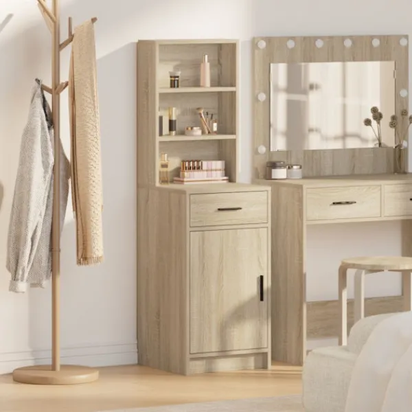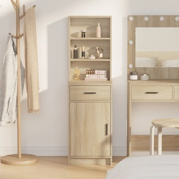 - Innovativa förvaringslösningar Med både lådor och hyllor, erbjuder högskåpet flexibla lagringsalternativ för alla dina behov, och dess rektangulära form maximerar utrymmet utan att se klumpigt ut. Perfekt för att organisera ditt porslin, linne eller andra saker.