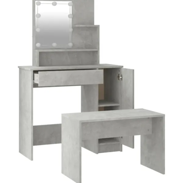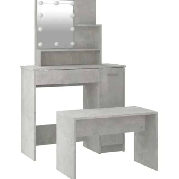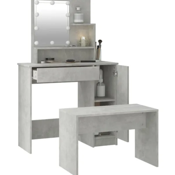Detta trendiga sminkbord ger ditt sovrum ett tidlöst, elegant utseende. Sminkbordet med LED är ett utmärkt komplement till din sovrumsinredning samtidigt som du har din kosmetika nära till hands! Stabilt material: Det konstruerade träet är av exceptionell kvalitet med slät yta och är också starkt, stabilt och fuktbeständigt.Spegel: Sminkbordet med spegel är perfekt för din dagliga skönhetsrutin. Spegeln låter dig ta hand om din hud och den underlättar när du sminkar dig!Gott om förvaringsutrymme: Sminkbordet med pall har gott om utrymme för enkel åtkomst till smink, smycken och vardagliga nödvändigheter.LED-ljus: Sminkbordet har också LED-lampor med USB, som är enkla att byta läge från varmt till kallvitt. LED-lamporna runt spegeln avger ljus.Breda applikationer: Detta sminkbord är lämpligt för olika scener, till exempel ditt sovrum, garderob och alla andra rum du vill ställa det. VARNING:För att förhindra att den välter måste denna produkt användas med den medföljande monteringsanordningen för vägg Observera:Varje produkt levereras med en monteringsmanual i lådan för enkel montering.