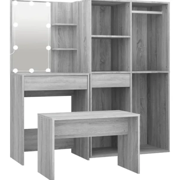 Detta trendiga sminkbord ger ditt sovrum ett tidlöst, elegant utseende. Sminkbordet med LED är ett utmärkt komplement till din sovrumsinredning samtidigt som du har din kosmetika nära till hands! Stabilt material: Det konstruerade träet är av exceptionell kvalitet med slät yta och är också starkt, stabilt och fuktbeständigt.Spegel: Sminkbordet med spegel är perfekt för din dagliga skönhetsrutin. Spegeln låter dig ta hand om din hud och den underlättar när du sminkar dig!Gott om förvaringsutrymme: Sminkbordet med pall har gott om utrymme för enkel åtkomst till smink, smycken och vardagliga nödvändigheter.LED-ljus: Sminkbordet har också LED-lampor med USB, som är enkla att byta läge från varmt till kallvitt. LED-lamporna runt spegeln avger ljus.Breda applikationer: Detta sminkbord är lämpligt för olika scener, till exempel ditt sovrum, garderob och alla andra rum du vill ställa det. VARNING:För att förhindra att den välter måste denna produkt användas med den medföljande monteringsanordningen för vägg Observera:Varje produkt levereras med en monteringsmanual i lådan för enkel montering.