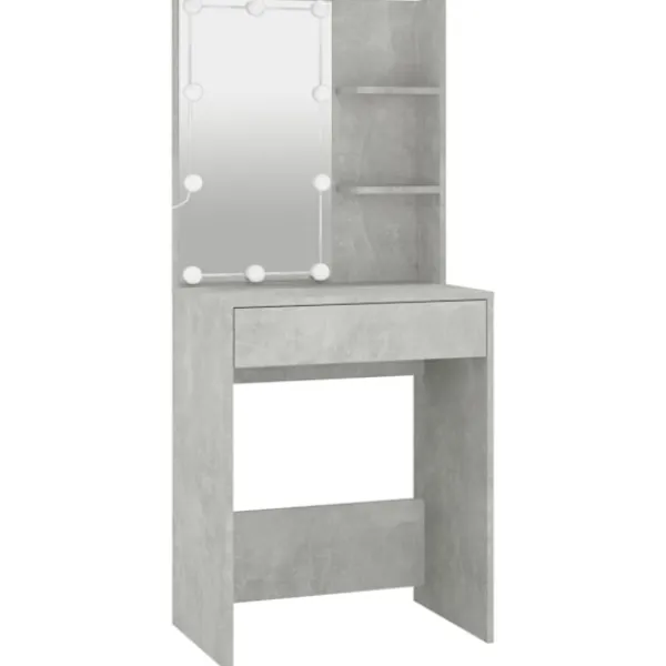 Detta sminkbord blir ett riktigt blickfång i din inredning, tack vare dess raka linjer och asymmetriska form. Hållbart material: Det konstruerade träet är av exceptionell kvalitet med slät yta och är också starkt, stabilt och fuktbeständigt.LED-ljus: Sminkbordet har också LED-lampor med USB, som är enkla att byta läge från varmt till kallvitt. LED-lamporna runt spegeln avger ljus.Gott om förvaringsutrymme: Den rymliga lådan och två öppna hyllorna har tillräckligt med förvaring för att organisera dina föremål och även göra ditt rum städat och rent.VARNING:För att förhindra att den välter måste denna produkt användas med den medföljande monteringsanordningen för vägg Observera:Varje produkt levereras med en monteringsmanual i lådan för enkel montering.