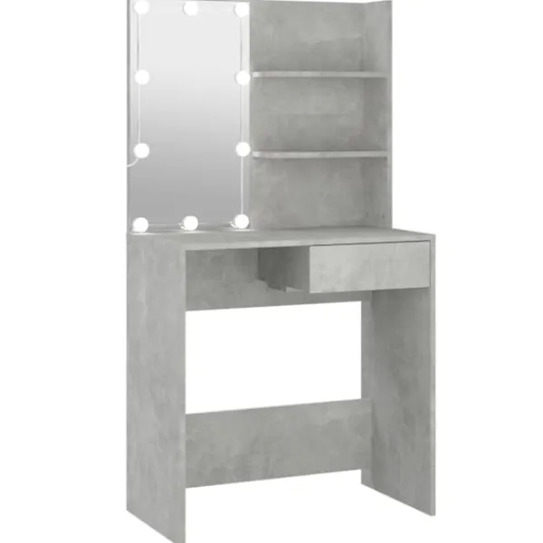 Detta sminkbord blir ett riktigt blickfång i din inredning, tack vare dess raka linjer och asymmetriska form. Hållbart material: Det konstruerade träet är av exceptionell kvalitet med slät yta och är också starkt, stabilt och fuktbeständigt.LED-ljus: Sminkbordet har också LED-lampor med USB, som är enkla att byta läge från varmt till kallvitt. LED-lamporna runt spegeln avger ljus.Gott om förvaringsutrymme: Sminkbordet levereras med en förvaringslåda för att lagra dina tillbehör, tillsammans med två öppna hyllor på bordet för att lagra alla typer av flaskor. VARNING:För att förhindra att den välter måste denna produkt användas med den medföljande monteringsanordningen för vägg Observera:Varje produkt levereras med en monteringsmanual i lådan för enkel montering.
