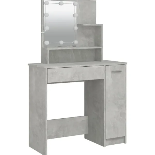 Detta sminkbord blir ett riktigt blickfång i din inredning, tack vare dess raka linjer och asymmetriska form. Hållbart material: Det konstruerade träet är av exceptionell kvalitet med slät yta och är också starkt, stabilt och fuktbeständigt.LED-ljus: Sminkbordet har också LED-lampor med USB, som är enkla att byta läge från varmt till kallvitt. LED-lamporna runt spegeln avger ljus.Gott om förvaringsutrymme: Detta sminkbord har öppna hyllor på bordet, en låda och ett sidoskåp, med gott om förvaringsutrymme för att hålla väsentligheter välorganiserade och inom räckhåll. VARNING:För att förhindra att den välter måste denna produkt användas med den medföljande monteringsanordningen för vägg Observera:Varje produkt levereras med en monteringsmanual i lådan för enkel montering.