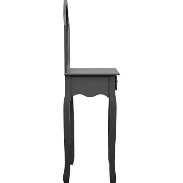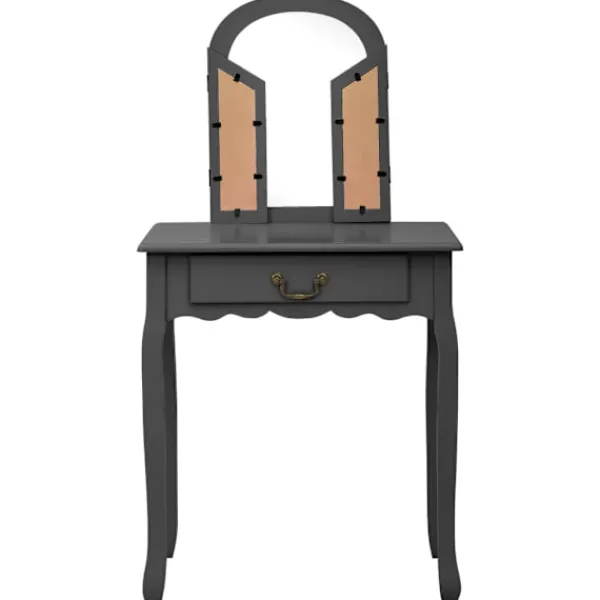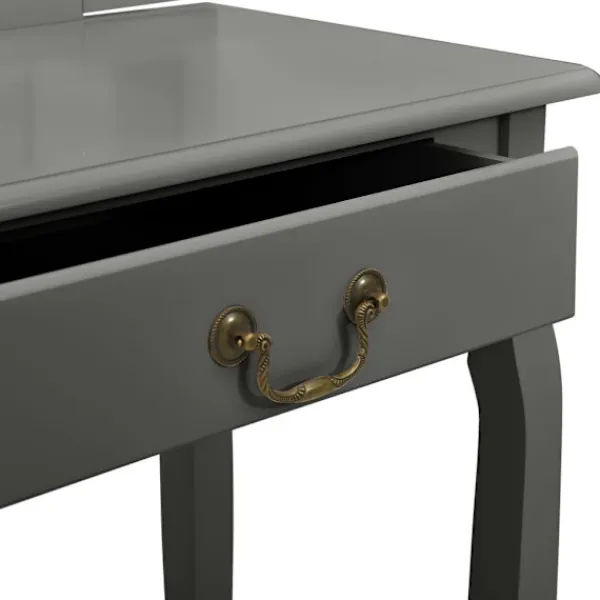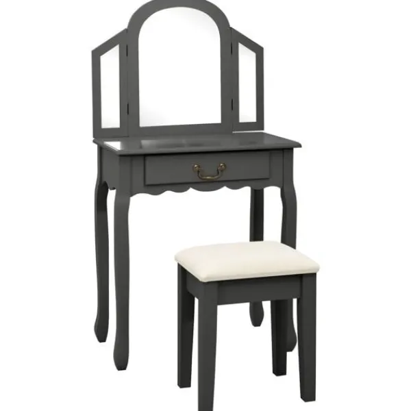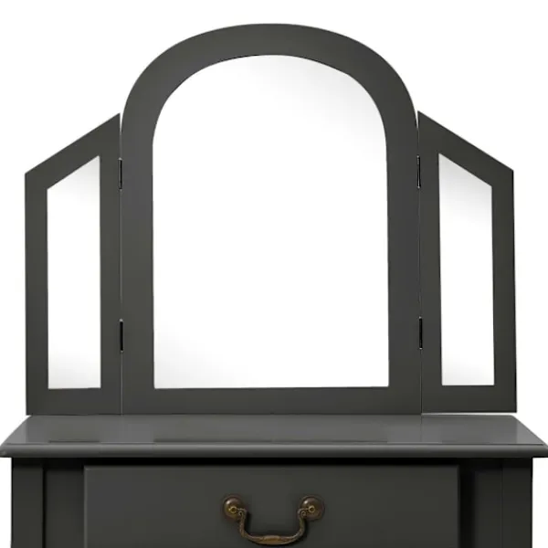 Vårt lyxiga sminkbord med pall är den perfekta platsen att sminka dig på morgonen och förbereda dig för dagen. Det har även fantastiska förvaringsmöjligheter för dina smycken och andra skönhetssaker. Sminkbordet med oval spegel och en pall blir ett riktigt blickfång i sovrummet. Lådan har gott om plats att förvara smink som du använder varje dag på et prydligt sätt. Pallen med tjock stoppning låter dig sitta bekvämt när du gör dig i ordning. När den inte används kan pallen förvaras under bordet för att spara plats. Dessutom är bordet hållbart och lätt att underhålla.