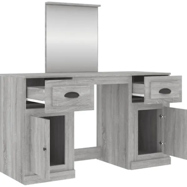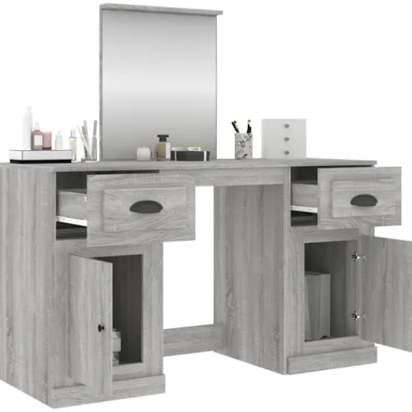 Med en trendig men ändå praktisk design, blir detta sminkbord med spegel en kontaktpunkt i ditt rum. Hållbart material: Det konstruerade träet är av exceptionell kvalitet med slät yta och är också starkt, stabilt och fuktbeständigt.Spegel: Sminkbordet med spegel är perfekt för din dagliga skönhetsrutin. Spegeln låter dig ta hand om din hud och den underlättar när du sminkar dig!Gott om förvaringsutrymme: Sminkbordet har gott om utrymme för enkel åtkomst till smink, smycken och vardagliga nödvändigheter. Bra att känna till:För att göra monteringen så enkel som möjligt, levereras varje produkt med en bruksanvisning. Varning: För att förhindra att den välter måste denna produkt användas tillsammans med det medföljande väggfästet.