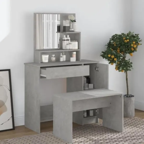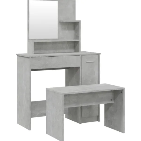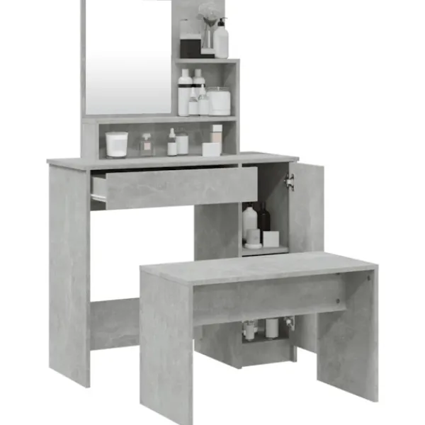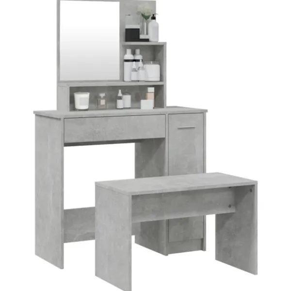 Detta trendiga sminkbord ger ditt sovrum ett tidlöst, elegant utseende. Sminkbordet med pall är ett utmärkt komplement till din sovrumsinredning samtidigt som du har din kosmetika nära till hands! Stabilt material: Det konstruerade träet är av exceptionell kvalitet med slät yta och är också starkt, stabilt och fuktbeständigt.Gott om förvaringsutrymme: Sminkbordet har gott om utrymme för enkel åtkomst till smink, smycken och vardagliga nödvändigheter.Spegel: Sminkbordet med spegel är perfekt för din dagliga skönhetsrutin. Spegeln låter dig ta hand om din hud och den underlättar när du sminkar dig!Breda applikationer: Detta sminkbord är lämpligt för olika scener, till exempel ditt sovrum, garderob och alla andra rum du vill ställa det.Dess moderna design har rena linjer och minimalistiskt utseende som en del av inredningsstilen. Varning:För att förhindra att den välter måste denna produkt användas med den medföljande monteringsanordningen för vägg Observera:Varje produkt levereras med en monteringsmanual i lådan för enkel montering.