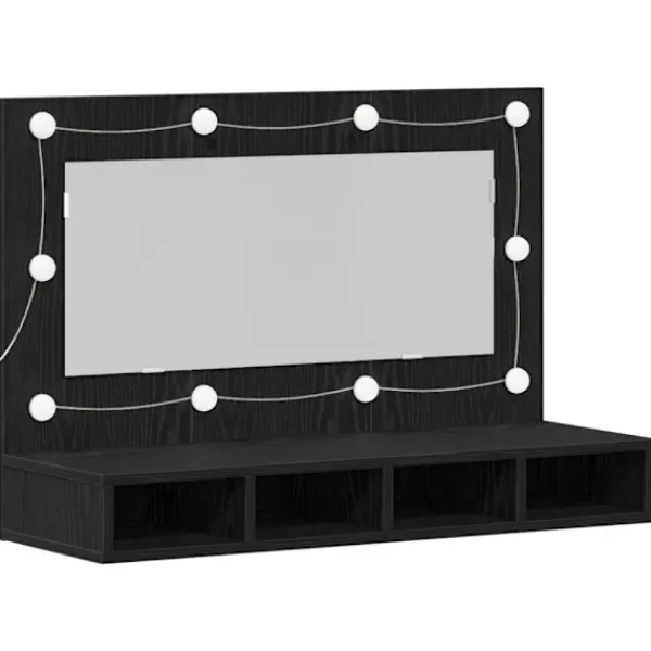 - Ingår komponenter: Skåpet har brädhyllor för flexibel förvaring och en planspegel som ger en klar bild när du ska styla dig eller vill lysa upp rummet. LED-remsor och en tryckknapp gör allt superenkelt.