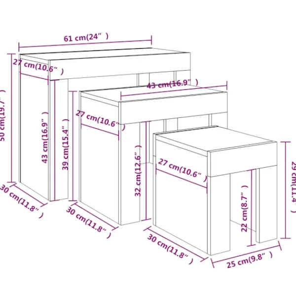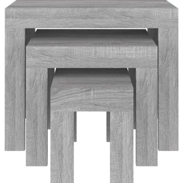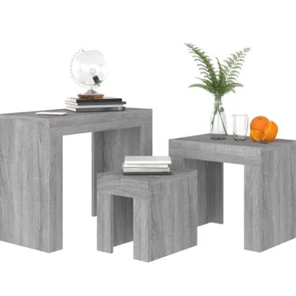 Dessa klassiska stapelbara soffbord kombinerar modern design med ett praktiskt, innovativt utseende, vilket gör dem till ett värdefullt och elegant tillskott till ditt vardagsrum. Platsbesparande design: Satsborden har tre storlekar som uppfyller dina olika krav. Det mindre bordet kan förvaras under det större soffbordet om du behöver mer utrymme. Och du kan ställa dem separat för att maximera ditt bordsutrymme.Mångsidig funktion: Satsborden är mångsidiga! Du kan använda dem som nattduksbord i sovrummet, avlastningsbord eller soffbord i vardagsrummet och på kontoret.Praktiskt material: Det konstruerade träet är av exceptionell kvalitet med slät yta och har styrka, stabilitet samt fuktbeständighet. Satsborden är tillverkade av konstruerat trä och är enkla att rengöra.