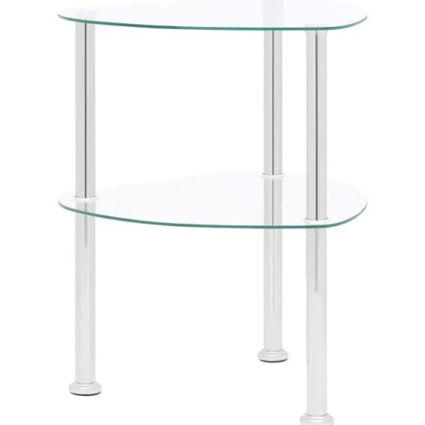 Detta eleganta sidobord med 2 hyllplan utstrålar en modern känsla och tar din heminredning till en ny nivå. Sidobordet är tillverkat i härdat glas med en grovslipad yta och rör i rostfritt stål, vilket gör det stabilt och hållbart. Den stadiga bordsskivan kan användas som en plats att ställa dricka eller andra saker. Det finns även utrymme mellan bordsskivan och hyllan för att förvara det väsentliga. Det kan även användas som exempelvis avlastningsbord, telefonbord och soffbord.