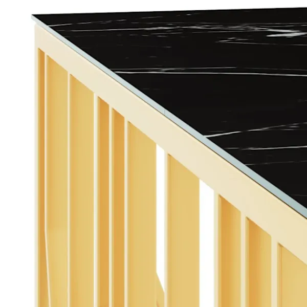 Detta soffbord kombinerar funktionalitet med snygg design och blir ett blickfång i ditt rum. Robust och stabil ram: Detta soffbord har en ram i rostfritt stål som är robust, stabil och motståndskraftig mot korrosion och rost.Bordsskiva i glas: Detta vardagsrumsbord har en härdad glasskiva med en marmorfinish som gör bordet extra snyggt. Bordsskivan ger en synlig och generös yta för att placera snacks, drycker, vaser, fruktskålar eller andra dekorativa föremål.Modern design: Bordet har en enkel och modern design som kompletterar alla vardagsrumsinredningar.Lätt att sköta: Accentbordet med fläckbeständiga ytor är lätt att torka rent och lätt att hålla snyggt.