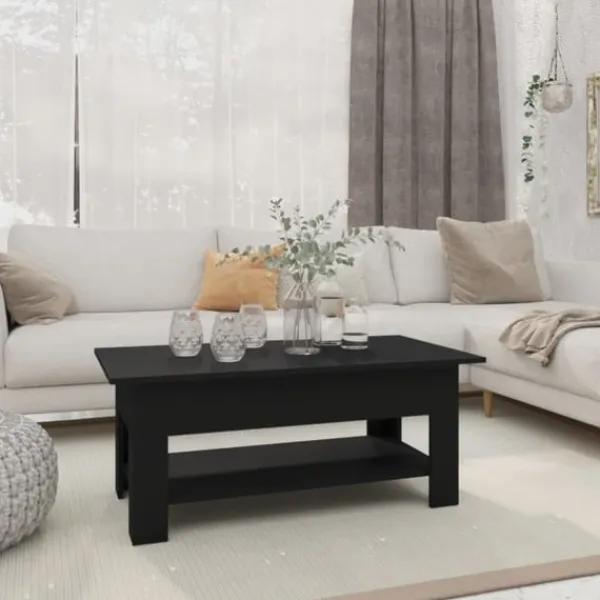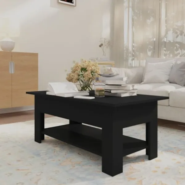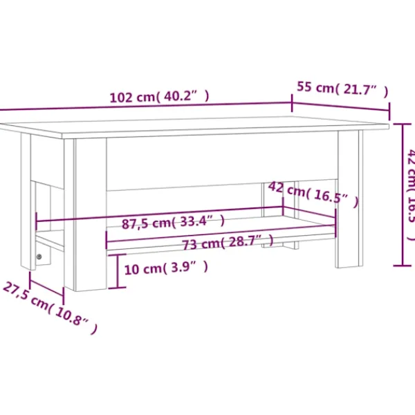 Detta moderna soffbord har en enkel men elegant design som är tänkt att passa alla inredningar. Soffbordet är tillverkat av konstruerat trä och är stabilt och hållbart. Bordsskivan är ideal för att placera mat och dryck, dekorativa föremål etc. Dessutom har den nedre hyllan gott om förvaringsutrymme för tidningar, böcker och andra nödvändigheter som du vill ha inom räckhåll. Dess hylla bidrar också till bordets moderna utseende och känsla.