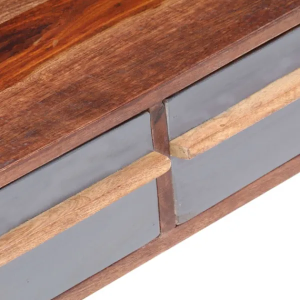 Detta soffbord i sheshamträ har en praktisk design och utstrålar en klassisk känsla i ditt vardagsrum. Soffbordet är tillverkat i massivt sheshamträ. Shesham är ett tropiskt lövträ känt för sina rika ådringar och kallas även rosenträ eller palisander. Varje steg i processen utförs med största noggrannhet, från polering och målning till lackering. Dess utsökta hantverk och vackra träådringar gör varje möbel unik och något annorlunda från varandra. Den stora och robusta ovansidan är perfekt för att placera drycker, vaser, fruktskålar eller prydnader. De två lådorna ger också gott om plats för att hålla dina tidskrifter, böcker och andra små saker organiserade och inom räckhåll. Viktigt: Färger varierar från möbel till möbel, vilket gör varje möbel unik. Leveransen är slumpartad, vilket säkerställer varje produkts exklusivitet och individualitet.