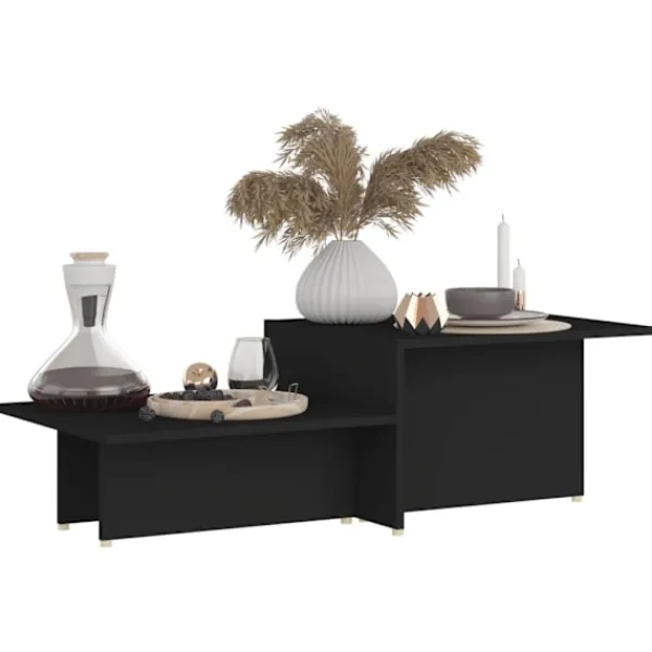 Letar du efter något mer iögonfallande till ditt hem? Detta soffbord är ett perfekt val för dig. Sidobordet är tillverkat i konstruerat trä, vilket gör det robust och stabilt. Bordsskivorna i två höjder har gott om plats att förvara det viktigaste organiserat och inom räckhåll. Dessutom är uppsättningen enkel att rengöra med en fuktig trasa.