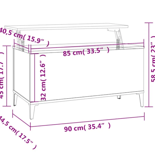 Letar du efter något mer stilrent, iögonfallande och praktiskt till ditt rum? Detta soffbord är ett perfekt val för dig. Lyftbar bordstopp: Bordsplattan på detta soffbord kan smidigt lyftas till en bekväm höjd och omvandlas till en plats där du kan arbeta eller äta.Hållbart material: Det konstruerade träet är av exceptionell kvalitet med slät yta och är också starkt, stabilt och fuktbeständigt.Gott om förvaring: Det dolda facket under den höjbara bordsskivan gör det enkelt att hålla ordning på saker och ting.Robust bordsskiva: Den robusta bordsskivan är perfekt för att placera dina drycker, mat och andra dekorativa föremål. Observera:Varje produkt levereras med en monteringsmanual i lådan för enkel montering.