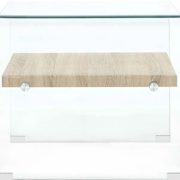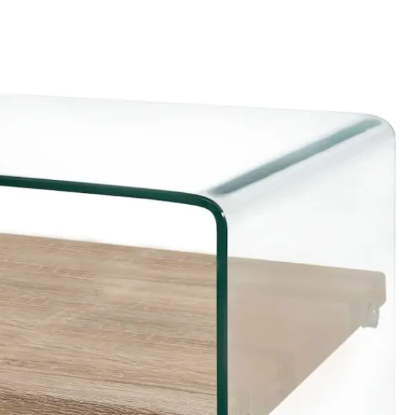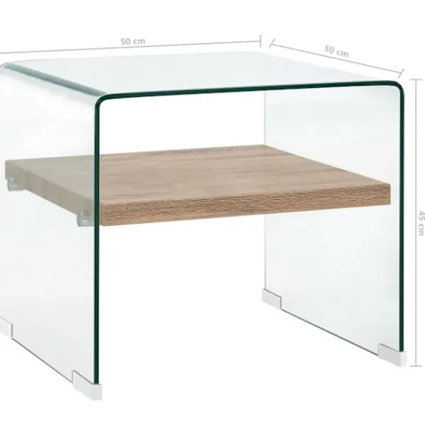 Presentera en modern charm i din inredning med detta soffbord i minimalistisk och tidlös stil! Soffbordet är tillverkat av MDF och härdat säkerhetsglas som är säkrare och starkare än vanligt glas. Tack vare den inbyggda hyllan hjälper detta praktiska soffbord dig att hålla ordning i ditt vardagsrum, och är perfekt för böcker, tidskrifter samt andra småsaker som du vill förvara inom räckhåll. Bordets stadiga konstruktion gör det ytterst hållbart. Slappna av och njut av en trevlig stund med vänner och familj runt detta unika soffbord!