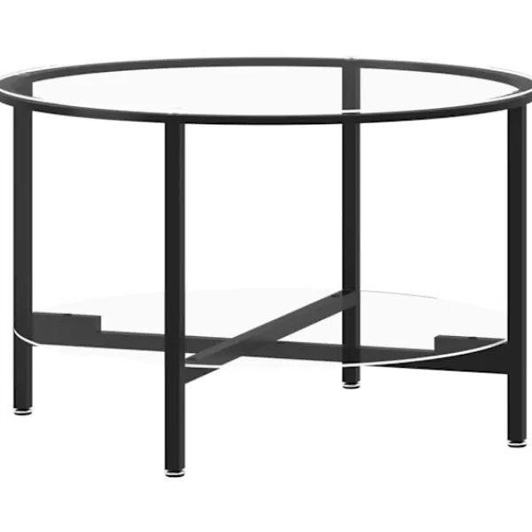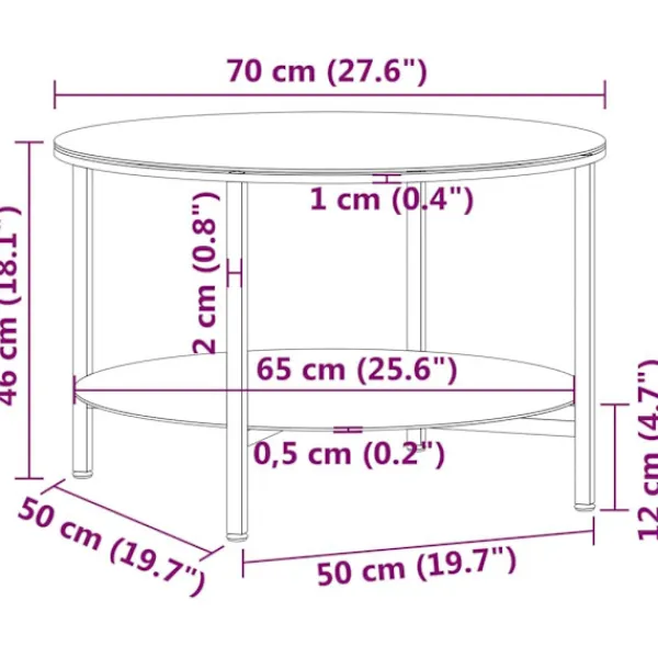 Detta trendiga soffbord ger en unik touch av modern stil till din befintliga heminredning. Den kan användas som soffbord, sidobord eller hörnbord. Modern stil: Lägg till något modernt till din befintliga inredning! Den moderna inredningsstilen har skarpa linjer, minimalistiska möbler och ett naturligt ljus som nyckelord.Stabil ram: Bordet är tillverkat av härdat glas och pulverlackerat järn, vilket gör det mycket stadigt och stabilt.Förvaringsfunktion: De två bordsskivorna på detta runda soffbord är perfekt för att placera drycker, vaser, tidskrifter, böcker, fjärrkontroller och andra väsentligheter på.