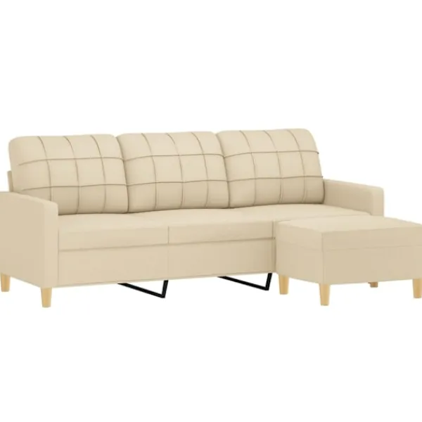 Den här soffan med fotpall är ett perfekt val för att läsa, titta på tv eller bara koppla av. Soffan blir en vacker detalj i ditt hem. Slitstarkt tyg: Tyget har ett enkelt och rent utseende samtidigt som det andas och är hållbart.Robust och stabil ram: Soffans plywood- och metallram med fotpall garanterar stabilitet.Bekväm sittupplevelse: Fåtöljen är mycket bekväm med det tjockt vadderade sätet, armstöden och ryggkudden.Flexibel fotpall: Denna pall är lämplig för att vila fötterna när du sitter i soffan eller vilstolen, dessutom får du en extra sittplats. Den enkla designen och det kompakta måttet gör den till en perfekt sittplats var som i din bostad.Iögonfallande design: Med dess enkla och moderna design blir fåtöljen ett blickfång i ditt rum.