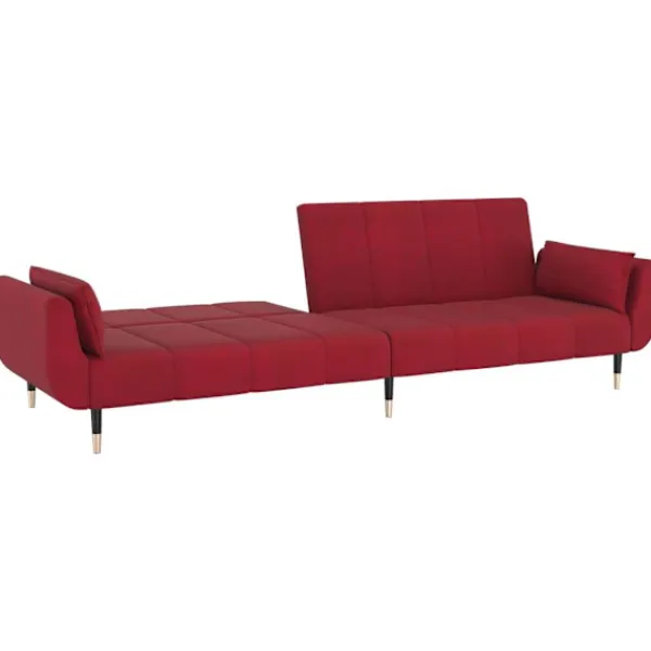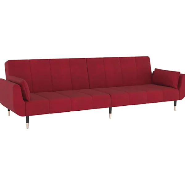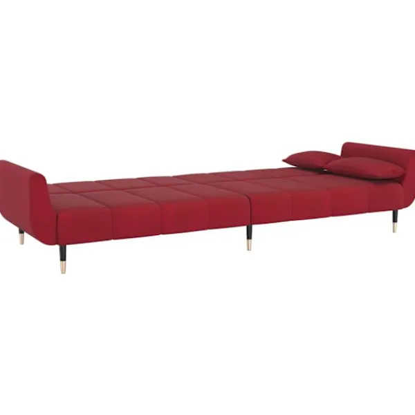Denna bäddsoffa har en konvertibel design. Så du kan välja mellan en sittande, vilande eller sovande position enligt dina önskemål och behov. Det är den perfekta möbeln om du behöver extra sovplats för dina vänner och gäster över natten. Mjukt och skönt material: Mjukt sammetstyg med fin texturJusterbart ryggstöd: Du kan luta ner de två separata ryggstöden, för att skapa en ideal plats att sova eller vila på.Stadig och stabil: Träramen och metallbenen säkerställer stabilitet.Två kuddar för komfort : Två kuddar ingår.
