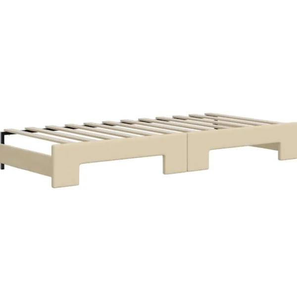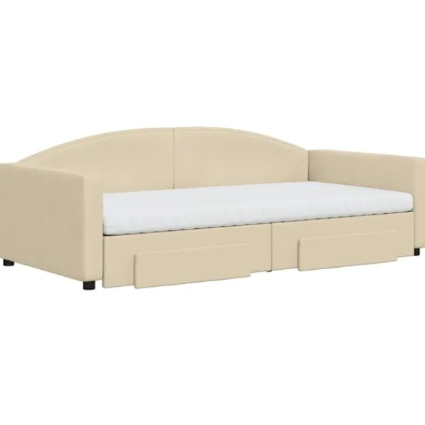 Denna 2-i-1-dagbädd med extrabädd, som kan användas som både soffa och säng, blir ett praktiskt och iögonfallande tillskott till ditt vardagsrum eller sovrum. Mångsidig dagbädd: Bäddsoffan fungerar som en soffa under dagen och kan enkelt omvandlas till en dubbelsäng på natten genom att dra ut extrasängen, vilket är en bekväm lösning för övernattande gäster och för att maximera ytan.Gott om förvaringsutrymme: Denna gästsäng har två lådor med hjul med gott om utrymme för förvaring av dina kläder, strumpor, leksaker, kuddar etc.Bekväm skummadrass: Denna dagbädd levereras med två skummadrasser för maximalt stöd och optimal komfort.Slitstarkt tyg och solid konstruktion: Denna dagbädd har en robust ram av trä och metall och är klädd i slitstarkt och mjukt tyg.