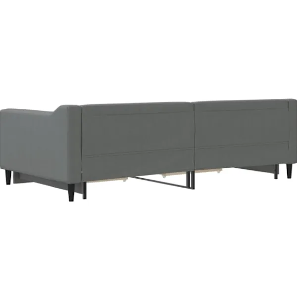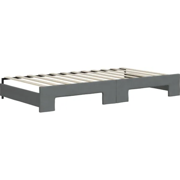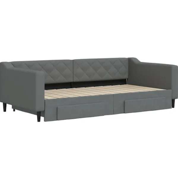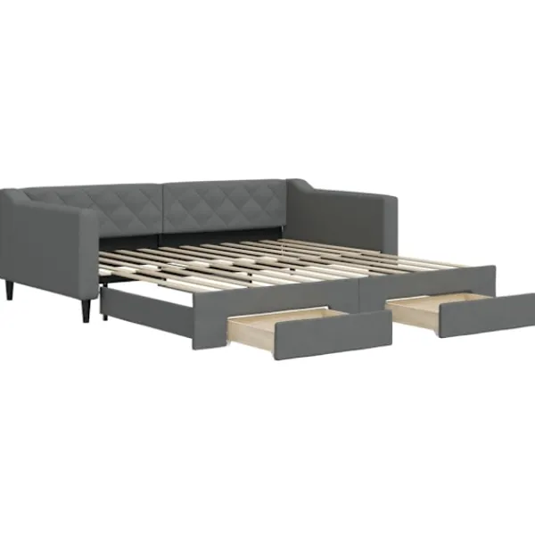 Denna 2-i-1-dagbädd med extrabädd, som kan användas som både soffa och säng, blir ett praktiskt och iögonfallande tillskott till ditt vardagsrum eller sovrum. Mångsidig dagbädd: Bäddsoffan fungerar som en soffa under dagen och kan enkelt omvandlas till en dubbelsäng på natten genom att dra ut extrasängen, vilket är en bekväm lösning för övernattande gäster och för att maximera ytan. Gott om förvaringsutrymme: Denna gästsäng har två lådor med hjul med gott om utrymme för förvaring av dina kläder, strumpor, leksaker, kuddar etc. Slitstarkt tyg och solid konstruktion: Denna dagbädd har en robust ram av trä och metall och är klädd i slitstarkt och mjukt tyg.Modern design: Bäddsoffan har en modern design med rena linjer och ett minimalistiskt utseende, vilket kommer att tillföra en modern stil till din interiör! Bra att känna till:Madrasser ingår inte i leveransen. Vi säljer ett urval av madrasser. Du kan titta i vår shop för lämpliga madrasser.