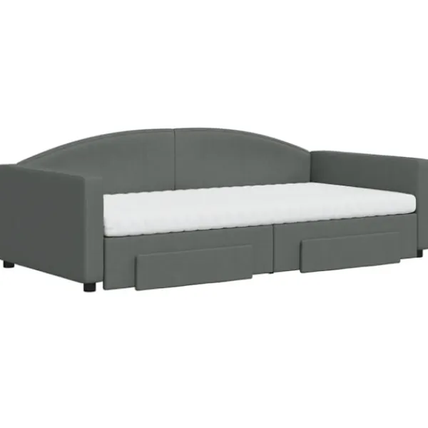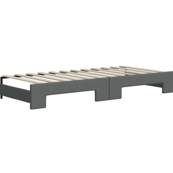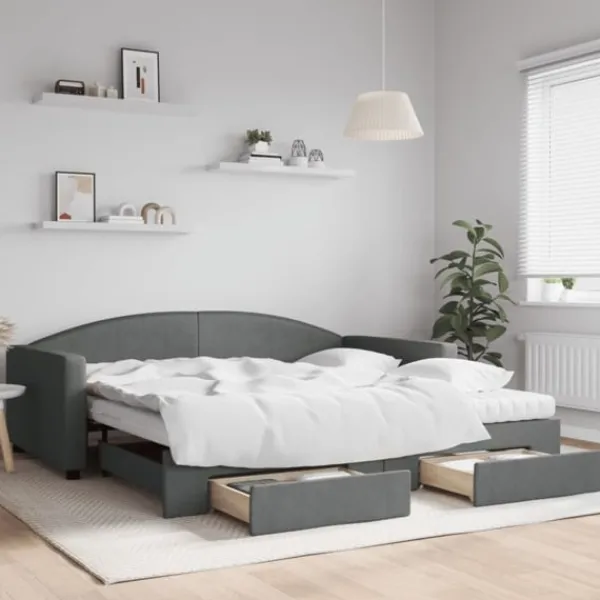 Denna 2-i-1-dagbädd med extrabädd, som kan användas som både soffa och säng, blir ett praktiskt och iögonfallande tillskott till ditt vardagsrum eller sovrum. Mångsidig dagbädd: Bäddsoffan fungerar som en soffa under dagen och kan enkelt omvandlas till en dubbelsäng på natten genom att dra ut extrasängen, vilket är en bekväm lösning för övernattande gäster och för att maximera ytan.Gott om förvaringsutrymme: Denna gästsäng har två lådor med hjul med gott om utrymme för förvaring av dina kläder, strumpor, leksaker, kuddar etc.Bekväm skummadrass: Denna dagbädd levereras med två skummadrasser för maximalt stöd och optimal komfort.Slitstarkt tyg och solid konstruktion: Denna dagbädd har en robust ram av trä och metall och är klädd i slitstarkt och mjukt tyg.
