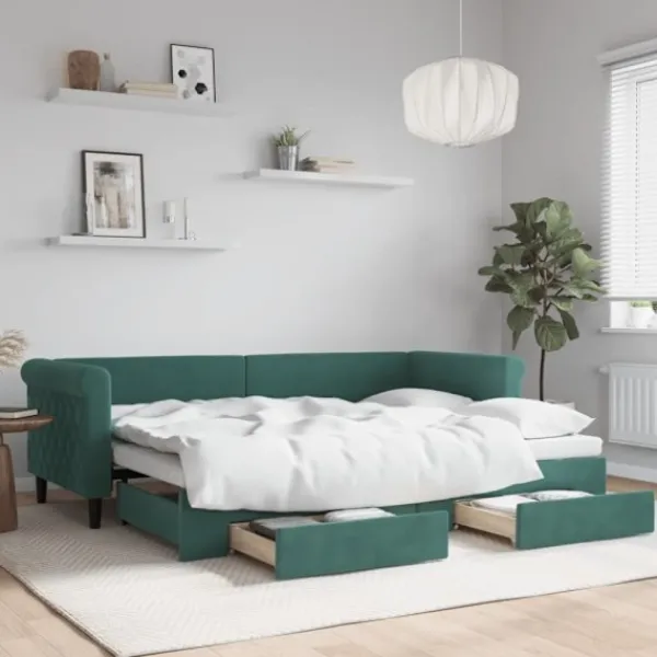 - Mjuk sammet och solid konstruktion: Denna bäddsoffa har en robust ram av trä och metall och är klädd i slitstark och mjuk sammet.