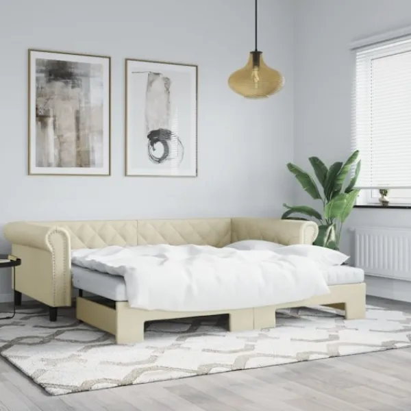Denna 2-i-1-dagbädd med extrabädd, som kan användas som både soffa och säng, blir ett praktiskt och iögonfallande tillskott till ditt vardagsrum eller sovrum.