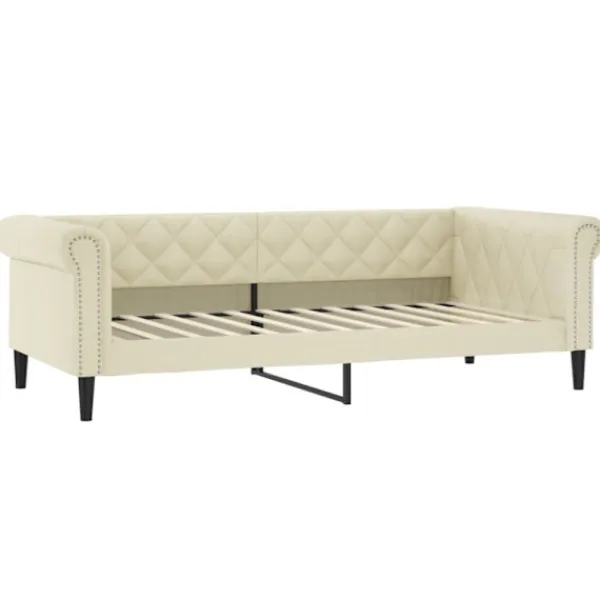 - Slitstarkt konstläder och solid konstruktion: Denna dagbädd har en robust ram av trä och metall och är klädd i slitstarkt, hållbart och lättskött konstläder.