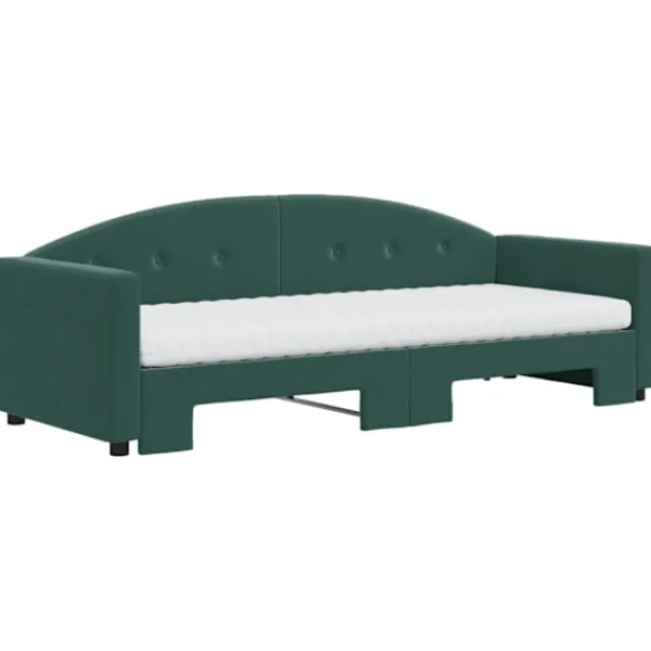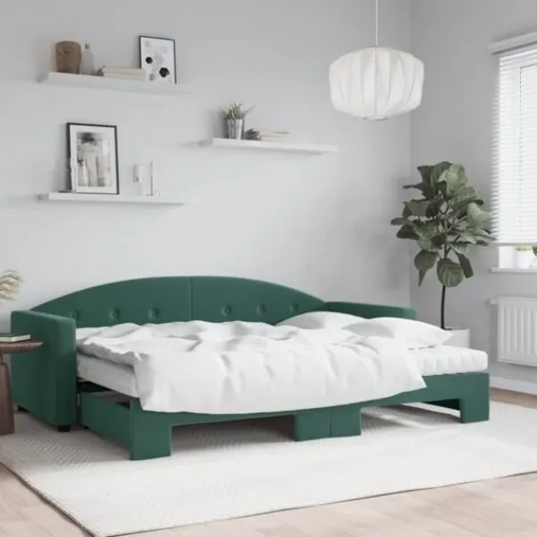 Denna 2-i-1-dagbädd med extrabädd och madrass, som kan användas som både soffa och säng, blir ett praktiskt och iögonfallande tillskott till ditt vardagsrum eller sovrum. Mångsidig dagbädd: Bäddsoffan fungerar som en soffa under dagen och kan enkelt omvandlas till en dubbelsäng på natten genom att dra ut extrasängen, vilket är en bekväm lösning för övernattande gäster och för att maximera ytan.Bekväm skummadrass: Denna dagbädd levereras med två skummadrasser för maximalt stöd och optimal komfort. Mjuk sammet och solid konstruktion: Denna bäddsoffa har en robust ram av trä och metall och är klädd i slitstark och mjuk sammet.
