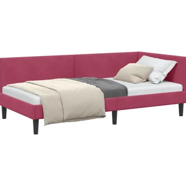 Denna hörn-bäddram är både en säng och soffa, perfekt när man vill spara plats i små rum. Kombinationen av sammet och plywood ger en modern och snygg design som passar i alla hem. Den blir en bekväm lounge under dagen och en mysig säng på natten. Perfekt för dig som behöver både stil och funktion.
