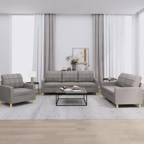 Den här fåtöljen är ett perfekt val för att läsa, titta på tv eller bara koppla av. Soffan blir en vacker detalj i ditt hem. Slitstarkt tyg: Tyget har ett enkelt och rent utseende samtidigt som det andas och är hållbart.Robust och stabil ram: Soffans plywood- och metallram garanterar robusthet och stabilitet.Bekväm sittupplevelse: Soffan är mycket bekväm tack vare det tjockt vadderade sätet, armstöden och ryggkuddarna.Iögonfallande design: Med dess enkla och moderna design kommer denna soffgrupp att bli ett blickfång i ditt rum.