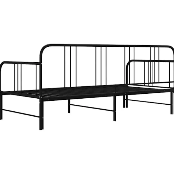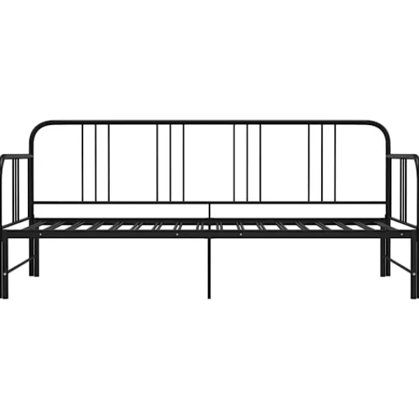 Denna mångsidiga bäddsoffa är perfekt för att ta emot oväntade övernattande gäster, samtidigt som den är ett bekvämt utrymme att sitta på under dagen. Du kan enkelt konvertera möbeln till en soffa under dagen och en skön säng under natten. Sängramen maximerar tillgänglig golvyta och har samtidigt plats för två personer, vilket gör den till ett perfekt val om du har begränsad boyta. Dessutom har sängen en ett skydd som förhindrar att användaren rullar ut i sömnen. Hela sängen har en stadig metallkonstruktion, vilket gör den mycket hållbar och lämplig för vardagsbruk. Obs: Leveransen omfattar endast sängramen. Madrasser ingår inte. Du kan hitta madrasser som passar i vår butik.