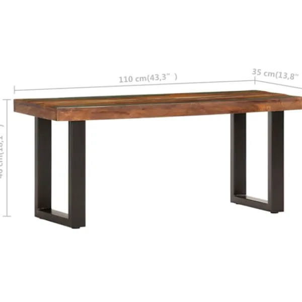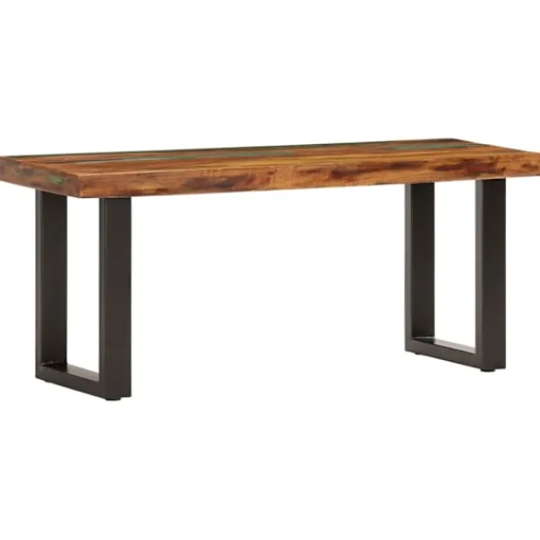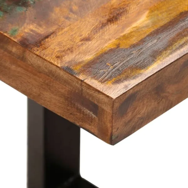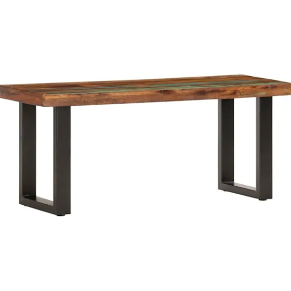 Denna bänk i massivt trä utmärks av en cool industriell stil och blir en fin detalj i ditt vardagsrum eller din hall. Bänkskivan är gjord av massiv återvunnet trä, hämtat från bjälklag, golv och stödbjälkar från rivna gamla byggnader. Dessutom kan den bestå av olika träslag som teak, lövträ, tropiskt trä, mangoträ etc. Detta innebär att det återvunna träet behåller egenskaperna hos dessa olika träslag. Återvunnet trä är redan åldrat, väderbitna och torkat. Därför krymper eller böjs de inte. De snygga träådringarna gör varje möbel unik och något annorlunda. Dessutom gör benen i rostfritt stål sitt till den industriella stilen och gör bänken betydligt stabil. Denna hallbänk är lätt att montera. OBS: Färger och ådringar varierar från möbel till möbel, vilket gör varje produkt unik. Leveransen är slumpartad.
