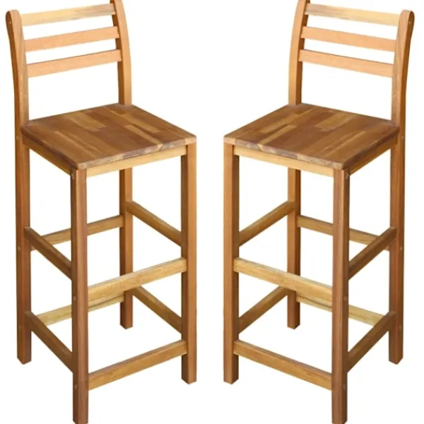 Uppsättningen om 2 barstolar i trä blir ett tidlöst tillägg i ditt kök eller din matsalsinredning. Barstolarna har tillverkats av massivt akaciaträ och är därför stadiga och hållbara och lämpliga för användning utomhus. Ryggstöden och fotstöden bidrar till uppsättningens sittkomfort. Barstolarna är enkla att montera. Leveransen inkluderar 2 barstolar.