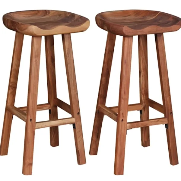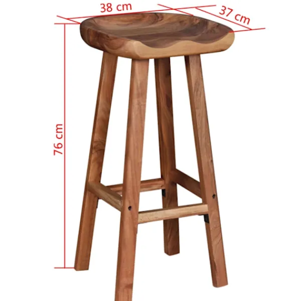 Tack vare sin enkla men tidlösa design, kommer dessa barpallar passa in med nästan alla olika typer av miljöer såsom hem, kontor, barer och caféer. Barstolarna är tillverkade i högkvalitativ akaciaträ, vilket är ett ett tropiskt träslag som är känt för att vara både väderbeständigt och hållbart. Ytan, med sin naturliga matta finish, är enkel att rengöra med en fuktig trasa. Detta par stolar är helt handgjort och hantverksskickligheten adderar till dess spektakulära retrostil. Varje steg i tillverkningsprocessen görs med stor omsorg, varesig det är polering, målning eller lackning. Leveransen innehåller 2 barstolar. Observera: Möblernas färger varierar vilket gör varje möbel unik. Leveransen är helt slumpmässig.