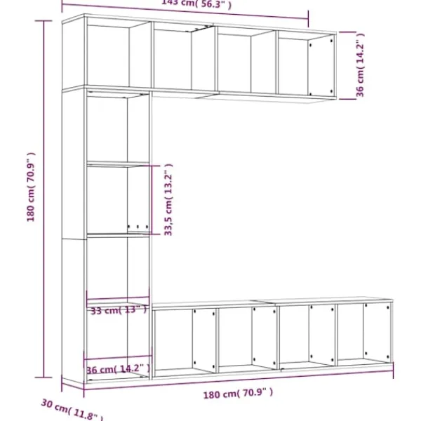 Med sin eleganta och klassiska design blir denna bokhylla/TV-bänk ett dekorativt och praktiskt tillskott i ditt hem. Praktiskt material: Det konstruerade träet är av exceptionell kvalitet med slät yta och är också starkt, stabilt och motståndskraftigt mot fukt.Rymlig förvaring: Bokhyllan är utformad med 12 utrymmen, med gott om plats för att lagra dina tidningar, böcker, DVD-skivor, multimediaenheter och olika andra föremål på ett tillgängligt och välorganiserat sätt.Mångsidig hylla: Bokhyllan är en mångsidig hylla som kan installeras horisontellt på golvet och till och med hängas vertikalt eller horisontellt på väggen, vilket gör det till det bästa valet för ditt hem.Lättskött yta: Bokhyllans yta är lätt att rengöra. Observera:Skruv(ar) och plugg(ar) för insidan av väggen ingår ej. Sök och använd skruv(ar) och plugg(ar) som passar dina väggar. Om du är osäker, sök professionell rådgivning. Läs och följ varje steg i instruktionerna noggrant.Varje produkt levereras med en monteringsmanual i lådan för enkel montering.
