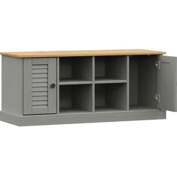 Denna klassiska skobänk i trä är exceptionellt vacker och gör ditt rum bättre organiserat. Massiv furu: Massivt furuträ är ett vackert naturmaterial. Furuträ har raka fibrer, och kvistarna ger materialet en rustik utstrålning. Då det är tillverkad i massiv furu är skoskåpet slitstarkt och robust.Gott om förvaringsutrymme: Denna bänk är designad med 4 fack och 2 små skåp med dörr för att förvara och hålla dina skor och småsaker välorganiserade.Lätt att underhålla: Hallbänken är lätt att rengöra med en fuktig trasa och kräver minimalt underhåll.Metallknoppar: Hallbänken levereras med metallknoppar som gör det enkelt att öppna och stänga dörrarna, samtidigt som det förhöjer dess skönhet.
