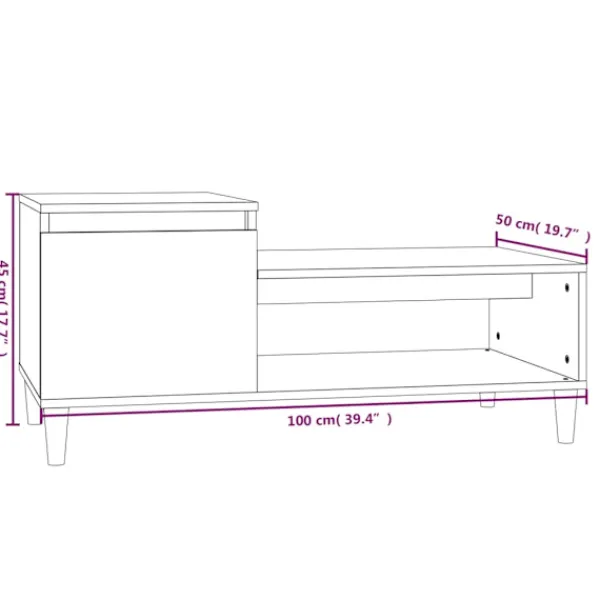 Letar du efter ett soffbord för din fritid? Detta soffbord utstrålar en unik känsla i ditt vardagsrum. Hållbart material: Det konstruerade träet är av exceptionell kvalitet med slät yta och är också starkt, stabilt och fuktbeständigt. Det är tillverkat av konstruerat trä och är enkelt att rengöra.Gott om förvaringsutrymme: Detta soffbord har 1 öppet fack och 1 låda, vilket möjliggör riklig och organiserad förvaring för dina vardagliga nödvändigheter.Praktisk bordsskiva: Vardagsrumsbordet har en tålig yta för att placera snacks, drycker, vaser, fruktskålar eller prydnadssaker på.Praktisk dörr: Håll dina väsentligheter fria från damm genom att gömma dem i detta soffbord. Observera:Varje produkt levereras med en monteringsmanual i lådan för enkel montering.