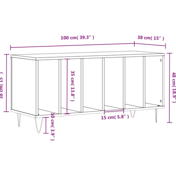 Förvara och visa upp dina vinylskivor med detta praktiska och klassiska skivskåp. Hållbart material: Det konstruerade träet är av exceptionell kvalitet med slät yta och är också starkt, stabilt och fuktbeständigt.Gott om förvaringsutrymme: Det rymliga stereoskåpet erbjuder gott om förvaringsutrymme för LP-skivor och håller din musiksamling välorganiserad.Robust bänkskiva: Den robusta ovansidan av stereoskåpet är perfekt för att placera din skivspelare eller annan elektronik.Järnben: Järnbenen utstrålar en industriell charm i din inredning samtidigt som de är stabila.