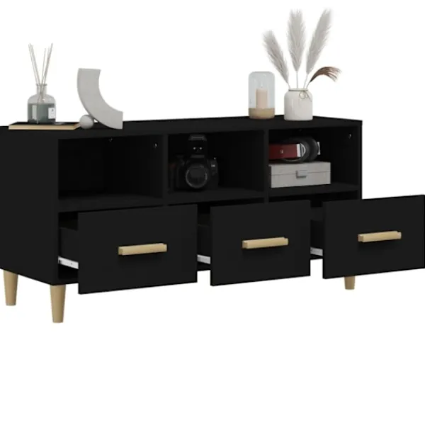 Denna moderna tv-bänk blir ett blickfång i ditt vardagsrum eller filmrum. Robust material: Det konstruerade träet är av exceptionell kvalitet med slät yta och är också starkt, stabilt och fuktbeständigt.Gott om förvaringsutrymme: Denna moderna medieenhet håller dina medieapparater organiserade med de medföljande lådorna och hyllorna.Stabil ovansida: Tv-möbelns ovansida är en bra plats att ställa saker som böcker och annan inredning. VARNING:För att förhindra att den välter måste denna produkt användas med den medföljande monteringsanordningen för väggObservera:Varje produkt levereras med en monteringsmanual i lådan för enkel montering.
