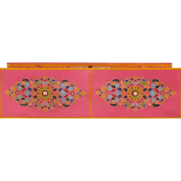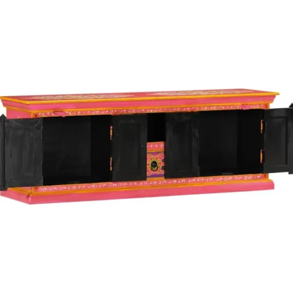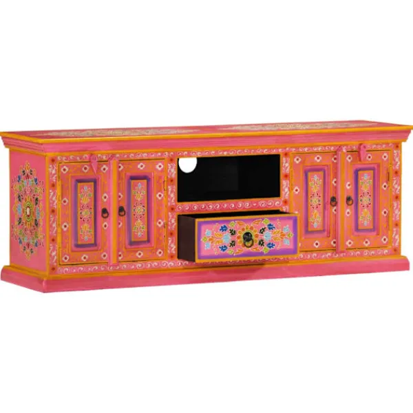 Denna retro tv-bänk i trä blir ett praktiskt och ett iögonfallande blickfång i din inredning. Massivt mangoträ: Massivt mangoträ är ett starkt, tropiskt träslag som blir robusta möbler. Dess vackra träådringar gör varje möbel något unik.Gott om förvaringsutrymme: Tv-bänken har fack för att hålla spelkonsoler, dvd-spelare och mediaenheter inom räckhåll och prydligt organiserade.Stabil ovansida: Tv-möbelns ovansida är en bra plats att ställa saker som böcker och annan inredning.Retrostil: Denna handmålade tv-bänk lägger till en retrostil i din nuvarande i redning. Retrostil är imiterande eller medvetet härledd och inspirerad av livsstilar och trender, inklusive tidigare och historiska konstformer. Observera:Färgerna kan variera från möbel till möbel vilket gör varje möbel unik. Leveransen är slumpmässig, vilket säkerställer varje produkts exklusivitet och individualitet.