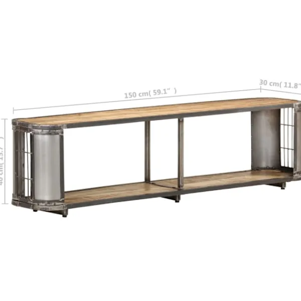 Denna industriella tv-bänk i trä med gott om förvaringsutrymme blir ett blickfång i vardagsrummet eller filmrummet. Denna tv-bänk är tillverkad i massivt mangoträ, ett tropiskt lövträ. Det är stark nog att bära vikten och är även mycket hållbart. Det fina hantverket och de vackra träådringarna gör varje stereobänk något unik. Skänken har ett stort öppet fack med gott om plats för att hålla dvd:er, medieenheter, böcker och småsaker organiserade och inom räckhåll. Viktigt: Färger varierar från möbel till möbel, vilket gör varje möbel unik. Leveransen är slumpartad, vilket säkerställer varje produkts exklusivitet och individualitet.