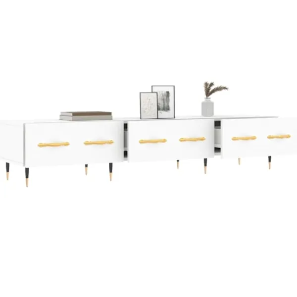 Denna stadiga tv-bänk blir ett blickfång i ditt rum med sin trendiga men praktiska design. Robust material: Det konstruerade träet är av exceptionell kvalitet med slät yta och är också starkt, stabilt och fuktbeständigt. Tv-bänken är tillverkad av konstruerat trä och är lätt att rengöra.Gott om förvaringsutrymme: Tv-bänken har 3 lådor som gör det till en bra plats för förvaring av dina tidskrifter, DVD-skivor eller andra föremål.Visningsfunktion: Den robusta ovansidan av medieenheten är lämplig för att visa dekorativa föremål som fotoramar och växter.Järnben: Järnbenen utstrålar en industriell charm i din inredning samtidigt som du garanteras stabilitet.