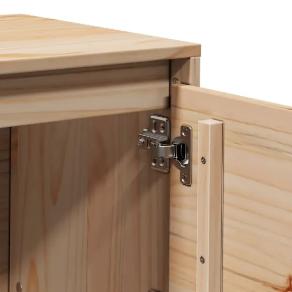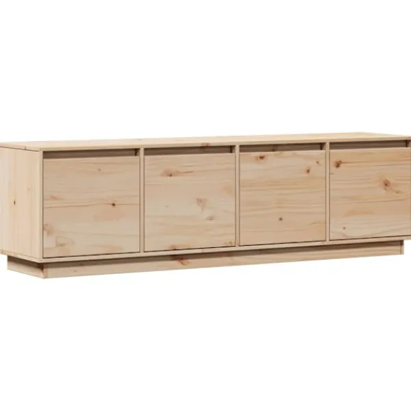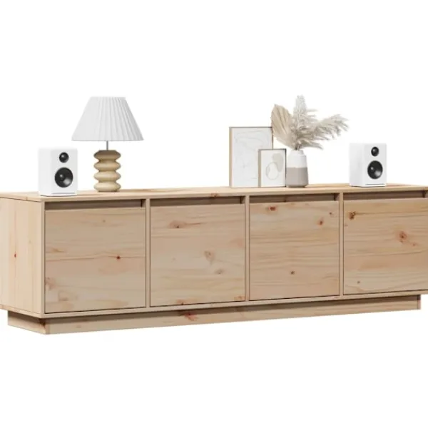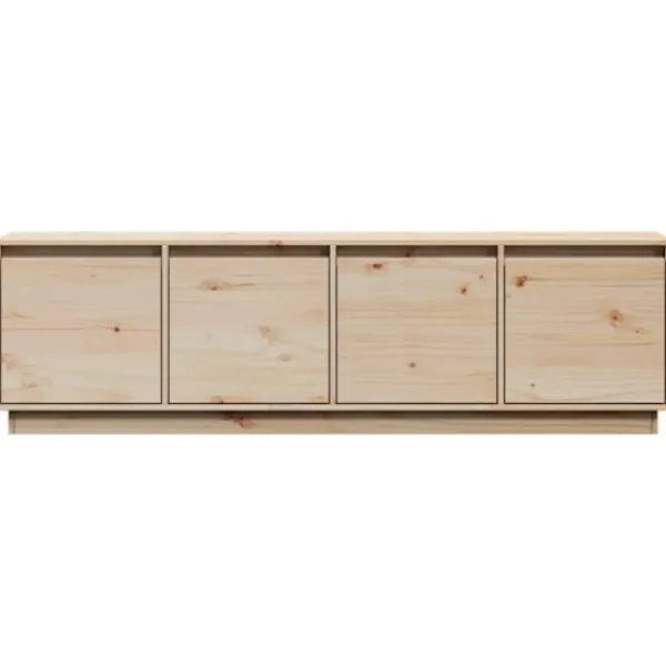 Denna trendiga tv-bänk i trä, med en elegant design, blir en dekorativ och praktisk detalj i din rumsinredning. Massivt furuträ: Massivt furuträ är ett vackert naturmaterial. Furuträ har raka fibrer, och knutarna ger materialet sin rustika utstrålning.Gott om förvaringsutrymme: Tv-bänken har 4 fack och 4 dörrar, med gott om lagringsutrymme för att hålla dina väsentligheter välorganiserade och inom räckhåll.Visningsfunktion: Den robusta ovansidan är en perfekt plats för att visa krukväxter, inramade foton och andra dekorativa föremål. Observera:Varje produkt levereras med en monteringsmanual i lådan för enkel montering.