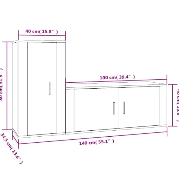 - 1 x TV-skåp: 40 x 34,5 x 80 cm (L x B x H)