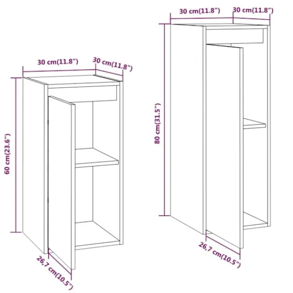 - 1 x TV-skåp: 30 x 30 x 80 cm (B x D x H)