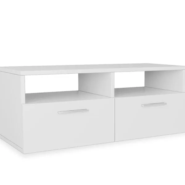De moderna TV-bänkarna har en underskattad och praktisk design som kommer passa alla slags hemdekorer. HiFi-bänkarna är tillverkade i spånskiva med PVC-kanter och de är stabila och hållbara. De har två öppna hyllor samt två skåp med nedåtöppnande dörrar. Således finns ordentligt med förvaringsutrymme för din DVD-spelare, spelkonsol, med mera. De minimalistiskt utformade TV-bänkarna kommer bli ett utmärk tillskott till ditt sov- eller vardagsrum. Leveransen omfattar 2 TV-bänkar